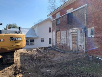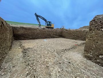 Excavating the job site location for foundation work.